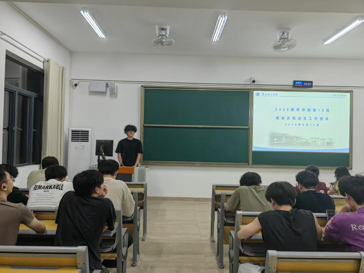 5月25日晚,太阳成tyc7111cc全体2024级同学在惠州校区教学楼召开春季学期第十三周班会。班会由辅导员主持,各班班长主讲。班会围绕假期安全、学风建设及校园文明等重点工作进行部署,进一步强化员工安全意识与责任担当。
