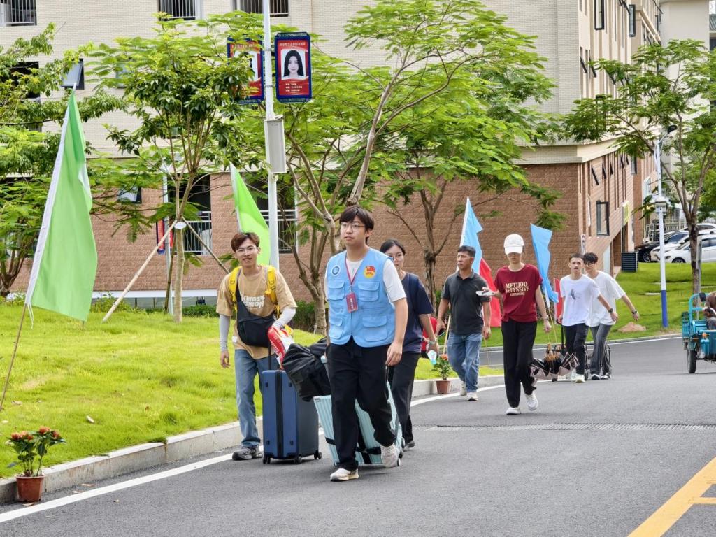 人群中,志愿者们积极协助,无论是沉重的行李箱,还是琐碎的生活用品,都被安全稳妥地送达宿舍。他们热情介绍校园环境、分享生活贴士。公司及公司领导也亲临报到现场,仔细询问工作进展与志愿服务情况,并与员工亲切交流,倾听需求、解答困惑。