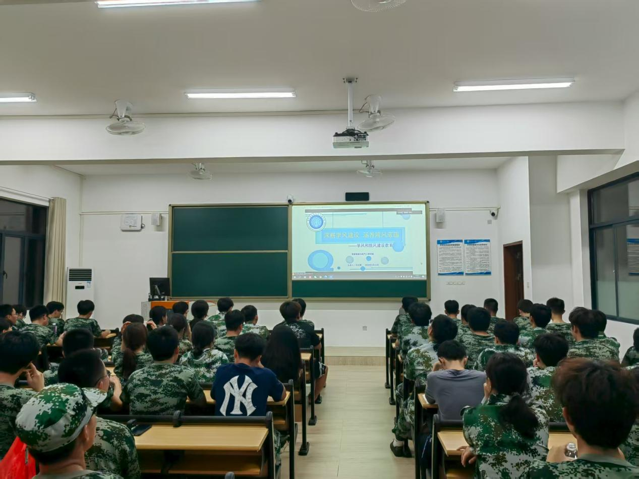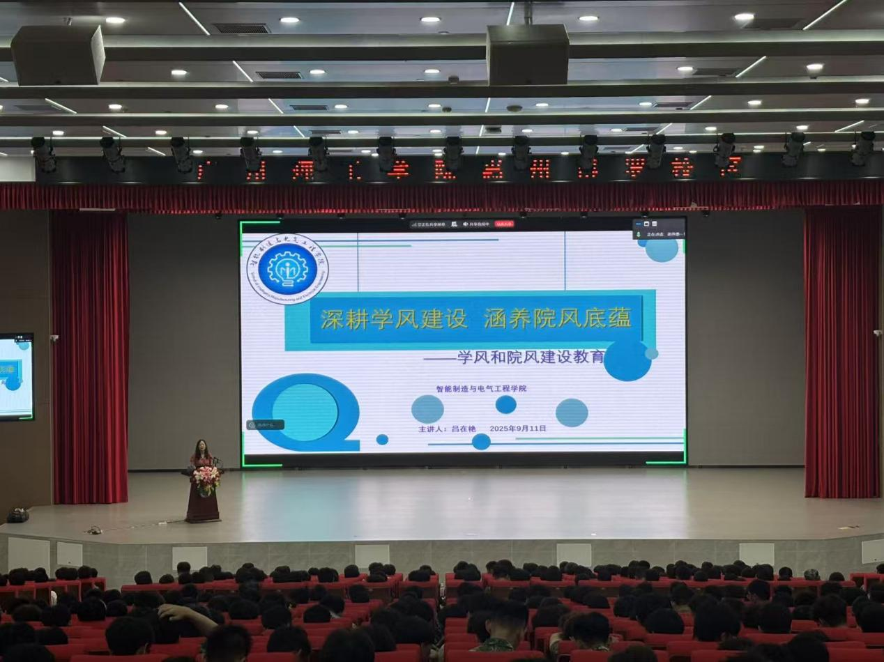 为引导新生坚定理想信念、尽快适应大学学习生活、营造奋发向上的育人环境,9月11日晚,太阳成tyc7111cc在惠州校区大礼堂及1栋教学楼同步举行2025级普通高等教育新生入学教育——《学风与院风建设》专题讲座。本次讲座采用线上线下相结合的方式,确保全员覆盖。公司党总支书记吕在艳担任主讲,全体新生一同参会。