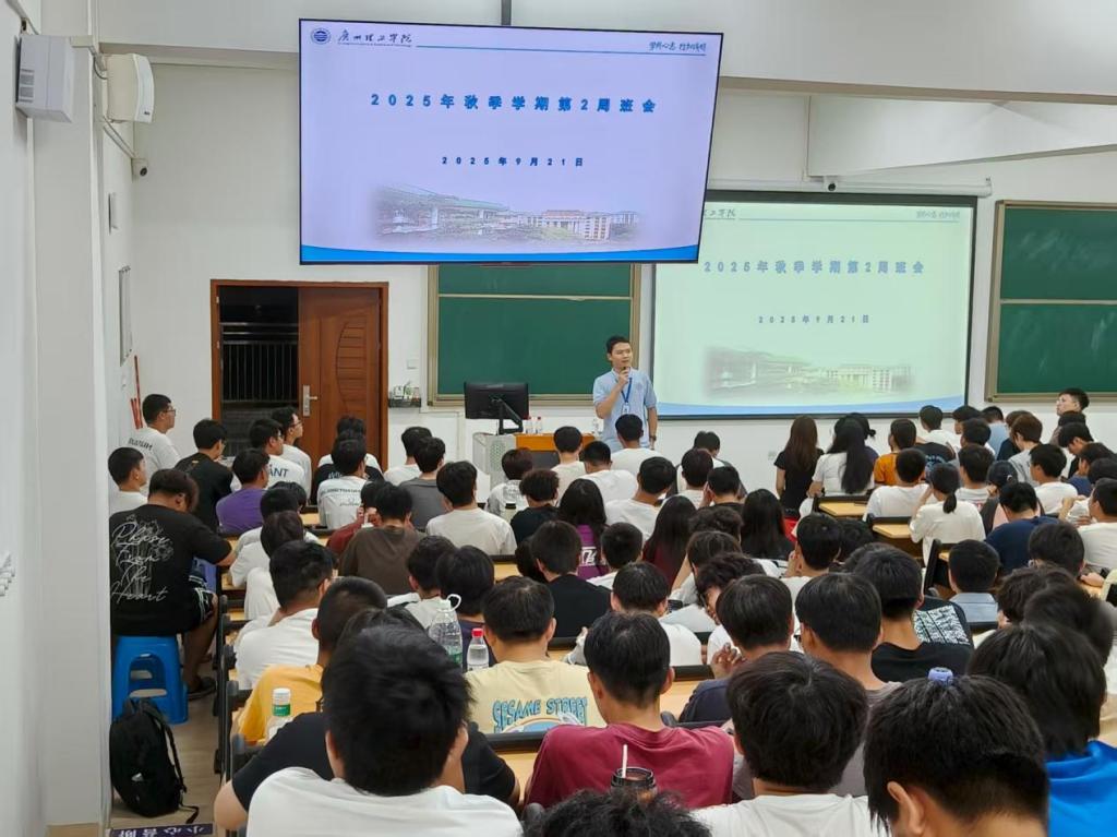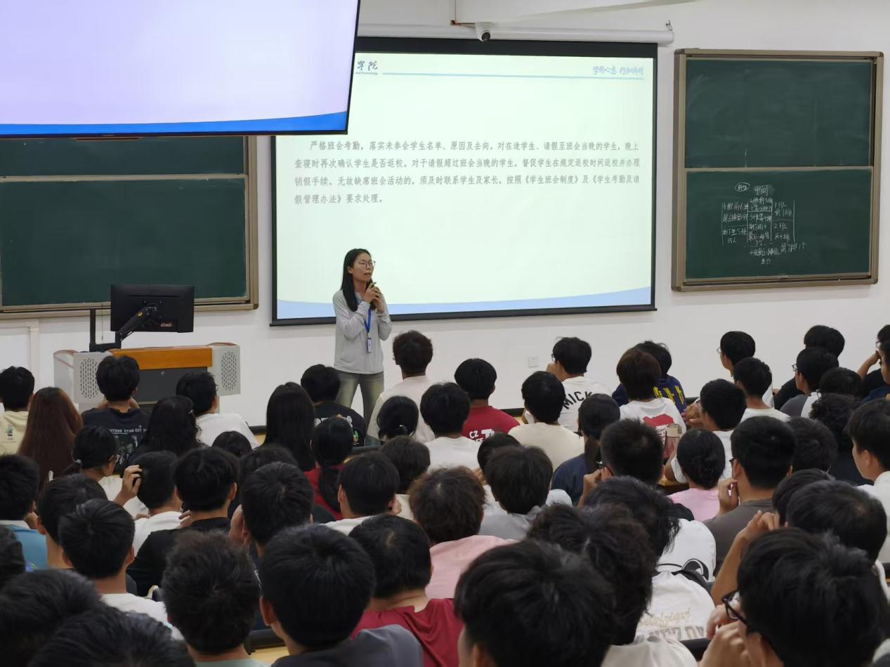9月21日晚,太阳成tyc7111cc组织全体2025级新生在惠州校区教学楼召开学风建设主题班会。班会由公司惠州校区全体辅导员主讲,围绕课堂秩序、早读晚修及作息制度等开展精细化解读。