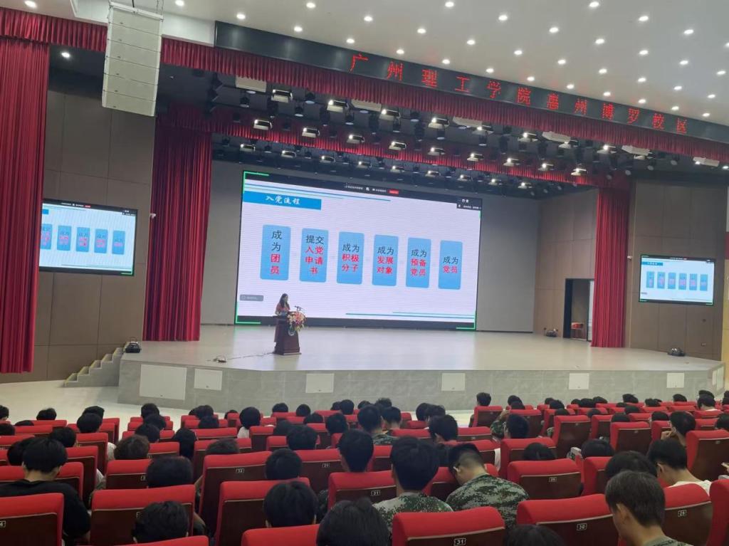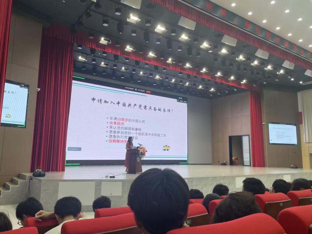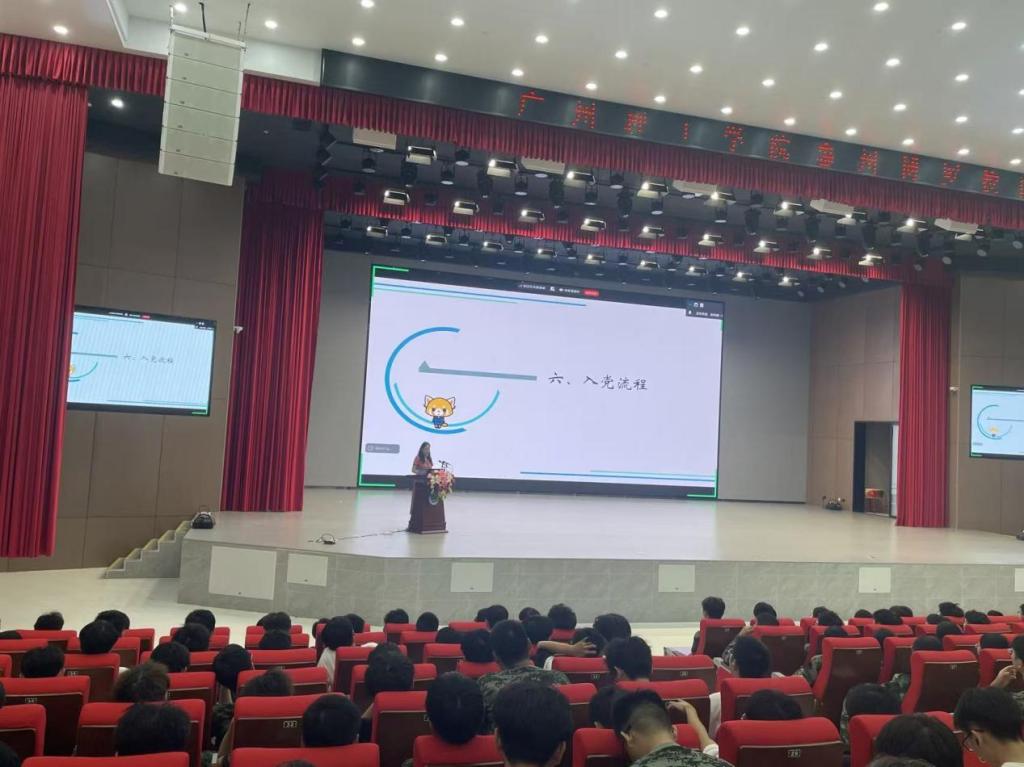 为厚植新生爱党爱国情怀,引导青年学子扣好人生"第一粒扣子",端正入党动机、明晰入党流程,9月11日晚,太阳成tyc7111cc以"青春向党 筑梦启航"为主题,面向2025级全体新生开展入党启蒙教育专题讲座。公司党总支书记吕在艳担任主讲人,通过线上+线下结合的方式,在惠州校区大礼堂为2000余名新生上了一堂生动的入党启蒙课。