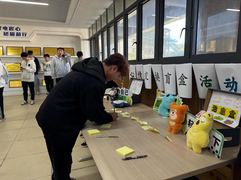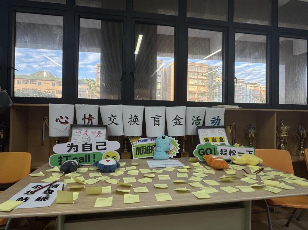 活动现场气氛温馨而有序,展板上五彩的便签逐渐拼凑成一幅充满善意的画卷,盲盒中的鼓励也在不断循环、持续传递。公司前期通过公众号推送和各班心理委员进行了广泛宣传,确保了活动的知晓度和参与度的提升。
