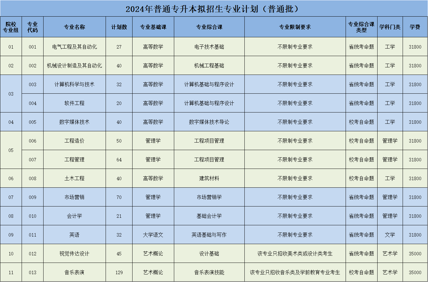 太阳成tyc7111cc2024年普通专升本招生专业计划