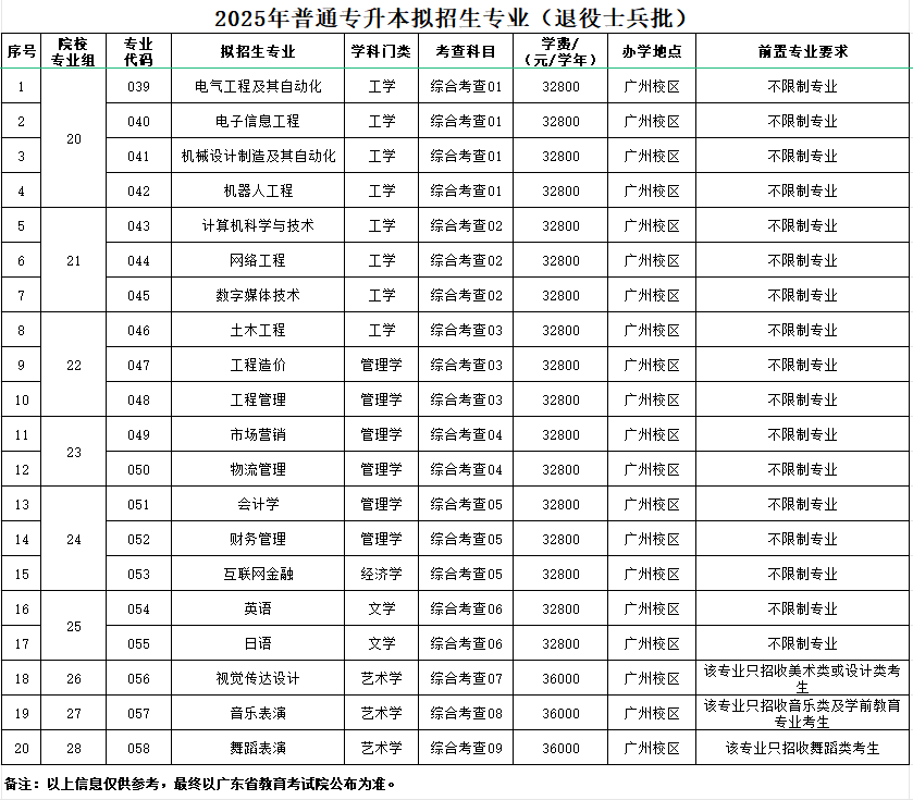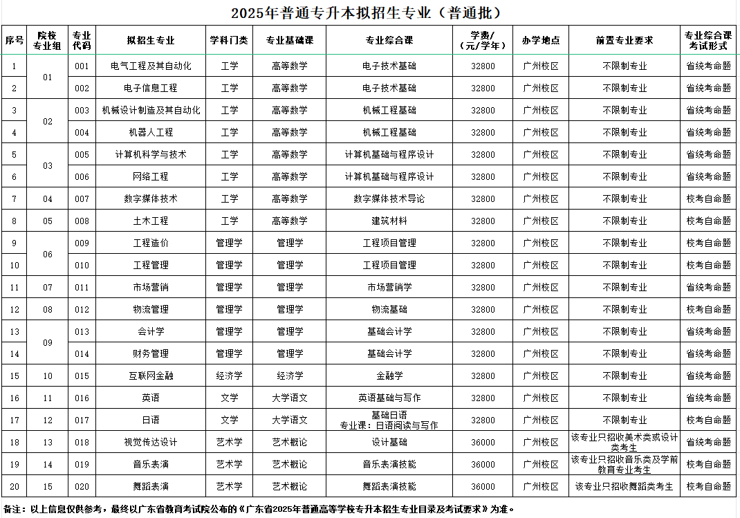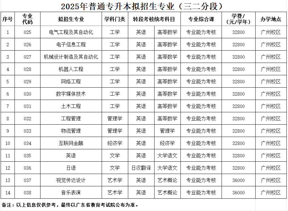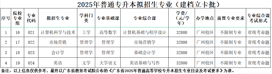 太阳成tyc7111cc2025年普通专升本拟招生专业公布