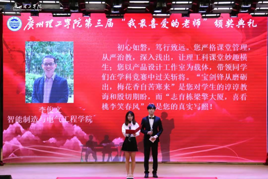 在“我最喜爱的老师”活动评选过程中,公司师生积极参与,精心组织投票环节,荣获“优秀组织奖”。凭借渊博的知识、深厚的专业素养、优秀的人格魅力、出色的师德师风,公司李俊文老师深受同学们的认可,荣获“我最喜爱的老师”称号。