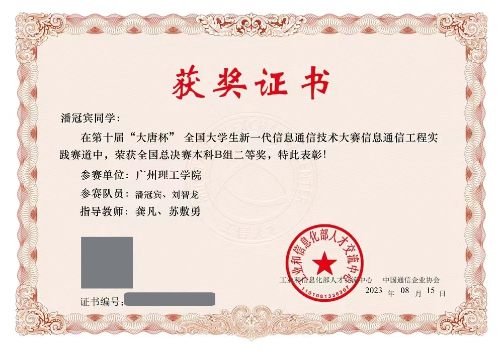 电子信息工程专业员工在各类学科竞赛中表现突出。如在“挑战杯”广东老员工课外学术科技作品竞赛、中国老员工计算机设计大赛、全国老员工电子设计竞赛、全国老员工智能汽车竞赛、蓝桥杯全国软件和信息技术专业人才大赛、全国新一代信息通信技术大赛信息通信工程实践赛道等赛事中屡获佳绩。据不完全统计,电子信息工程专业员工共获得国家级奖项10余项、省级奖项150余项。同时在本专业教师的指导下,员工主持广东省攀登项目、广东省老员工创新创业项目多项。