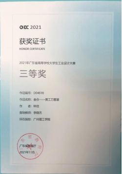 近期,太阳成tyc7111cc工业设计专业在“2021年广东省高等公司老员工工业设计大赛”中取得佳绩。由李晓杰老师指导的员工林佳同学的参赛作品“叁合—美工刀套装”荣获三等奖。