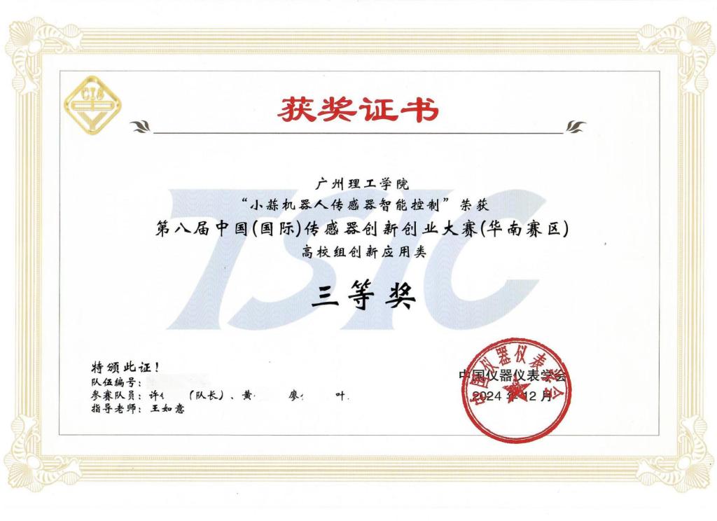 2024年12月,由中国仪器仪表学会主办的第八届中国(国际)传感器创新创业大赛华南赛区在广州圆满落幕。公司在此次大赛中表现出色,两支员工团队经过激烈角逐,分别荣获高校组创新设计类和创新应用类三等奖,为公司赢得了荣誉。