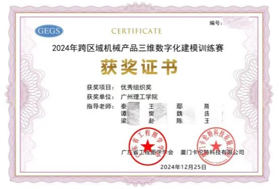 在刚刚落幕的2024年12月15日号线上跨区域机械产品三维数字化建模训练赛中,公司学子凭借出色的三维数字化建模能力和创新精神,荣获多项大奖,展现了公司在工程图学教育领域的卓越成就。本次比赛由厦门卡伦特科技有限公司与广东省工程图学学会联合举办,以“匠心智绘,技展宏图”为主题,旨在激发员工的创新意识,强化三维数字化建模能力,并促进先进成图技术的广泛交流。比赛吸引了来自全国各高等院校、职业院校、技工院校及相关企事业单位的选手参加,竞争激烈。
