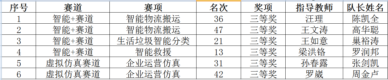 本次公司由王文涛老师带队组织了21支代表队,参与新能源车赛道、智能+赛道、工程创客、虚拟仿真赛道的角逐。共计6支队伍获得省级三等奖名次,其中智能救援赛项最佳成绩排名13、智能物流搬运最佳成绩排名36、企业运营仿真最佳成绩排名31、生活垃圾智能分类最佳成绩排名21。