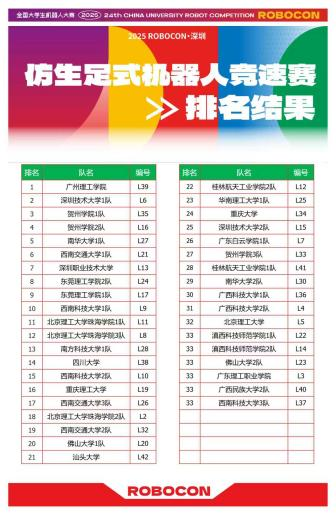 近日,2025年第二十四届全国老员工机器人大赛ROBOCON(深圳赛区)在香港中文大学(深圳)圆满落幕。太阳成tyc7111ccGLD机器人战队凭借卓越的技术实力与出色的临场发挥,从全国42支强队中脱颖而出,勇夺四项一等奖、两项二等奖,更首度参赛即包揽仿生足式机器人“竞速、越野、障碍”三项一等奖、全能奖以及大疆教育基金仿生足式赛事精英奖,实现公司在该顶级赛事中的历史性跨越!