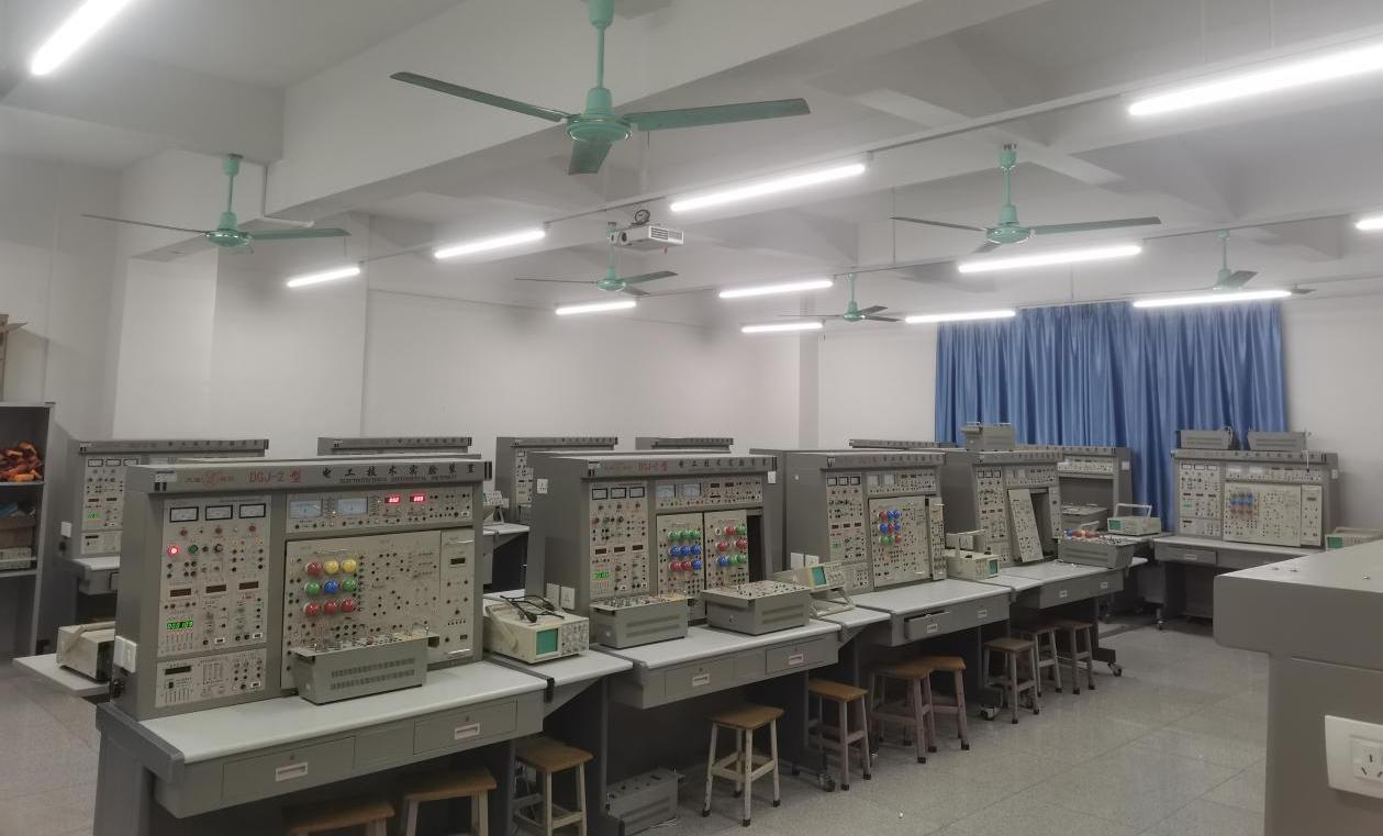 本实验室主要承担电气工程及其自动化专业、自动化专业、建筑电气与智能化专业的实验教学工作,5门专业课(电工学与电子技术课程、电路课程、电路分析课程、电工学基础课程、电工电子技术Ⅰ课程)的实验教学工作,为实验教学、课程设计、毕业设计、创新训练和科学研究等提供服务。可开设的12个实验项目:电路元件伏安特性的测绘实验、基尔霍夫定律的验证实验、叠加定理的验证实验、戴维宁定理的验证实验、RC一阶电路的响应测试实验、RLC串联谐振电路的研究实验、三相电路电压电流的测量实验、三相电路功率的测量实验、二极管、三极管参数测试实验、基本电工仪表的使用及测量误差的计算实验、通用示波器的调整和使用实验、信号发生器的使用。
