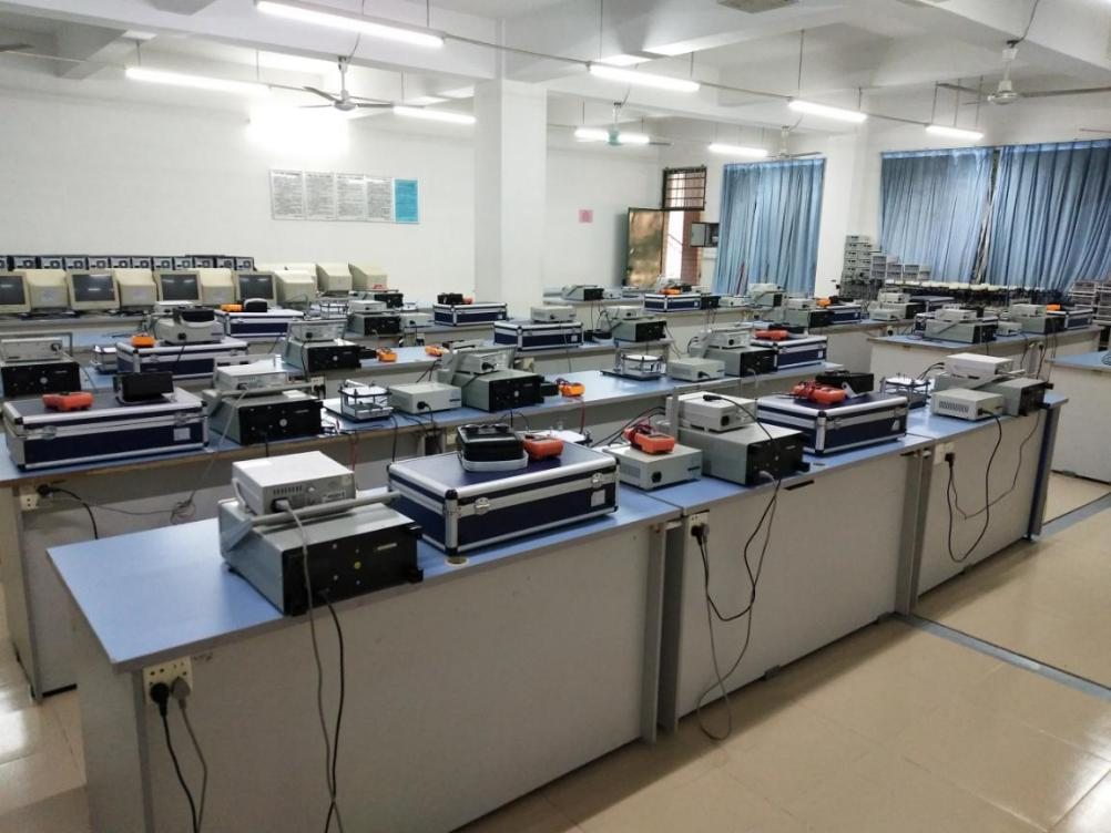 位于电子楼304房的电工电子(公用)实验室成立于2004年,总面积约143平方米,设备固定资产约48.78万元,1000元以上仪器设备188台。有兼职实验教师7人,专职实验员1人,其中,硕士学历4人。