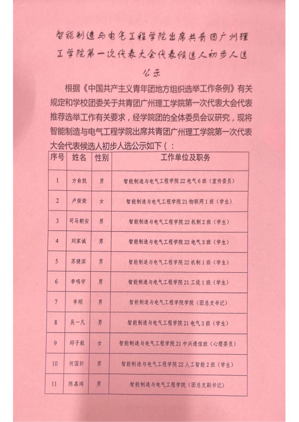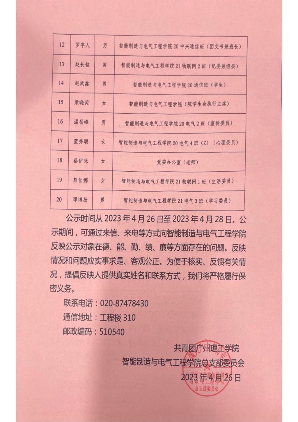 根据《中国共产主义青年团地方组织选举工作条例》文件要求,经评选,现将名单进行公示.名单于2023年4月26日至2023年4月28日进行公示,如有异议,请于2023年4月28日前向老师反映:李老师;办公地点:工程楼310。