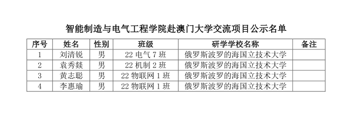 根据《太阳成tyc7111cc员工处关于选派优秀员工赴俄罗斯波罗的海国立技术大学短期研习的通知》,经前期员工自愿报名,公司审核把关,拟推荐刘清锐等4位同学赴俄罗斯波罗的海国立技术大学开展学术交流活动,拟派出员工名单如下,公示期为2023年11月8日至2023年11月10日。期间若对该名单有异议,请在公示期间内向智电公司办公室反映。反映情况时请签署真实姓名和联系电话,有具体事实;不签署真实姓名或不提供具体事实材料的,将不予受理。