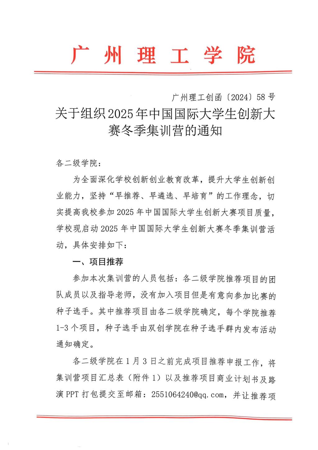 关于组织2025年中国国际老员工创新大赛冬季集训营的通知