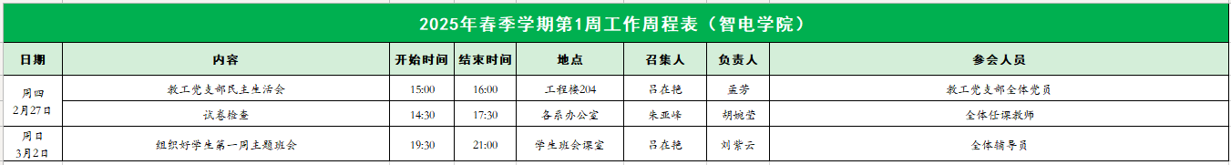 智电公司2025年春季学期第1周工作周程表