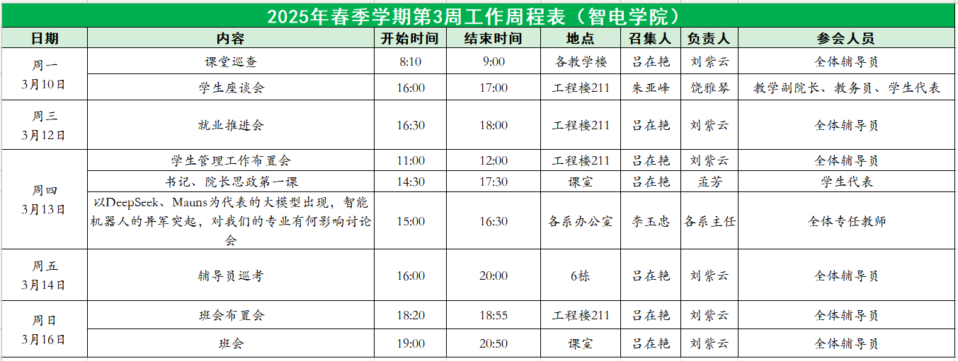 智电公司2025年春季学期第3周工作周程表