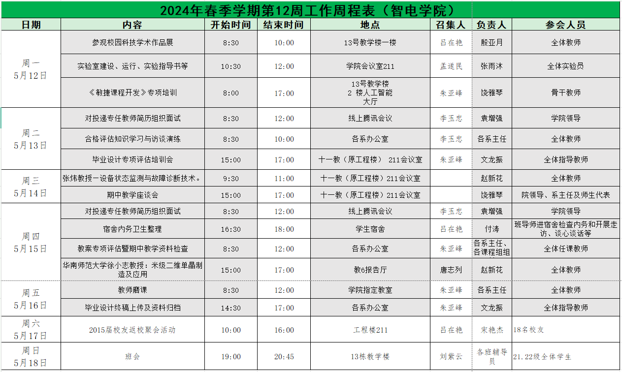 智电公司2025年春季学期第12周工作周程表