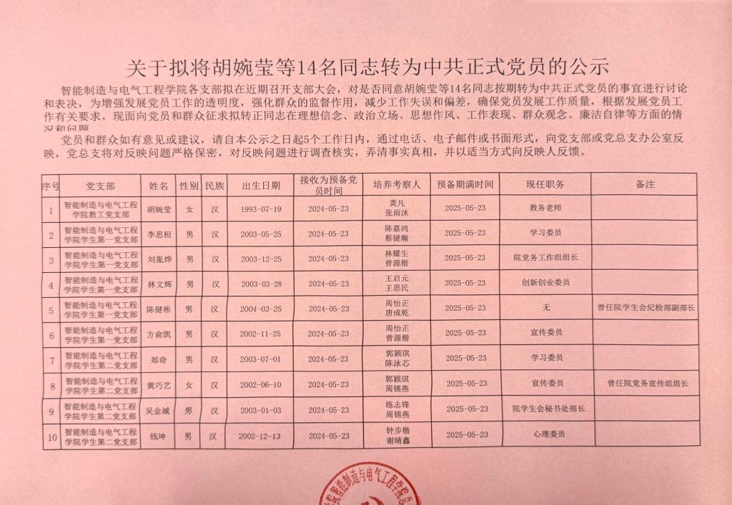 太阳成tyc7111cc各支部拟在近期召开支部大会,对是否同意胡婉莹等14名同志按期转为中共正式党员的事宜进行讨论和表决,为增强发展党员工作的透明度,强化群众的监督作用,减少工作失误和偏差,确保党员发展工作质量,根据发展党员工作有关要求,现面向党员和群众征求拟转正同志在理想信念、政治立场、思想作风、工作表现、群众观念、廉洁自律等方面的情况和问题。