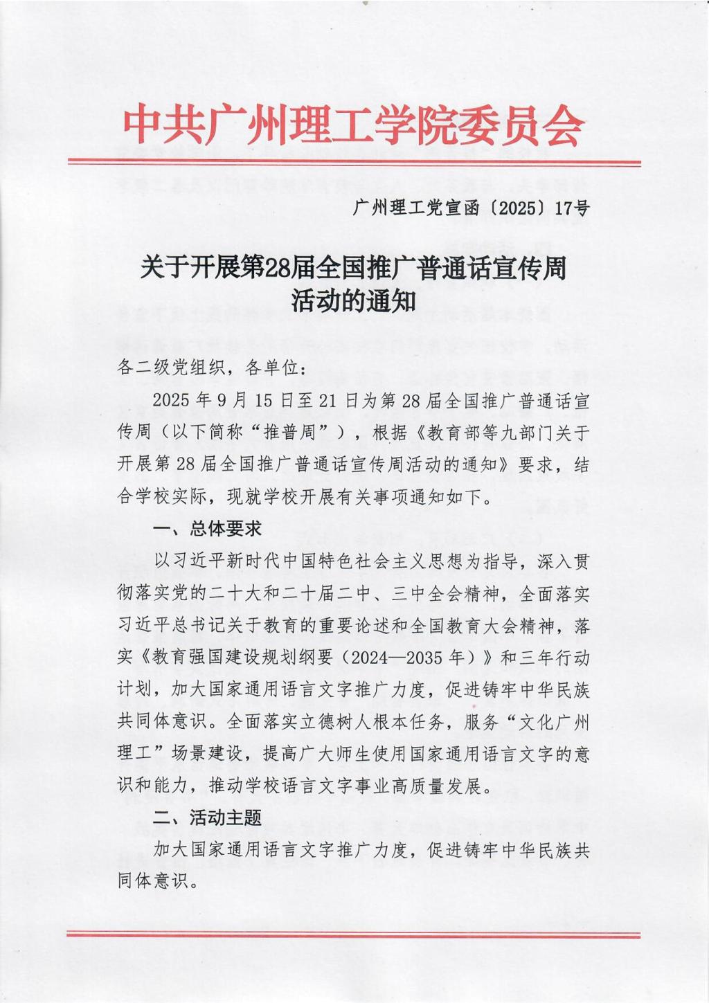 关于开展第28届全国推广普通话宣传周活动的通知