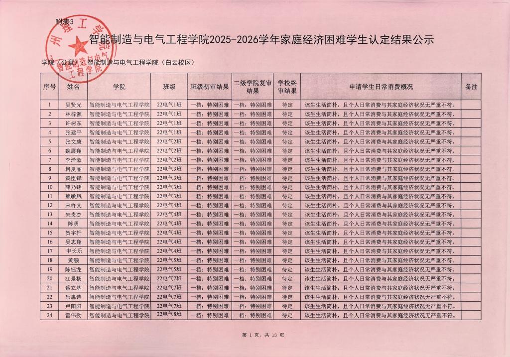 根据《关于做好2025-2026学年家庭经济困难员工认定工作通知》(广州理工学助函〔2025〕10号)等文件精神,公司积极开展家庭经济困难员工的认定工作。经过员工本人自愿提出申请、班级评议小组评议、二级公司核定工作小组初审等程序,现将2025-2026学年秋季学期家庭经济困难员工认定的院级初审结果予以公示。