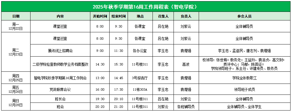 智电公司2025年秋季学期第16周工作周程表