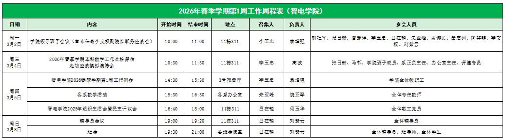 智电公司2026年春季学期第一周工作周程表