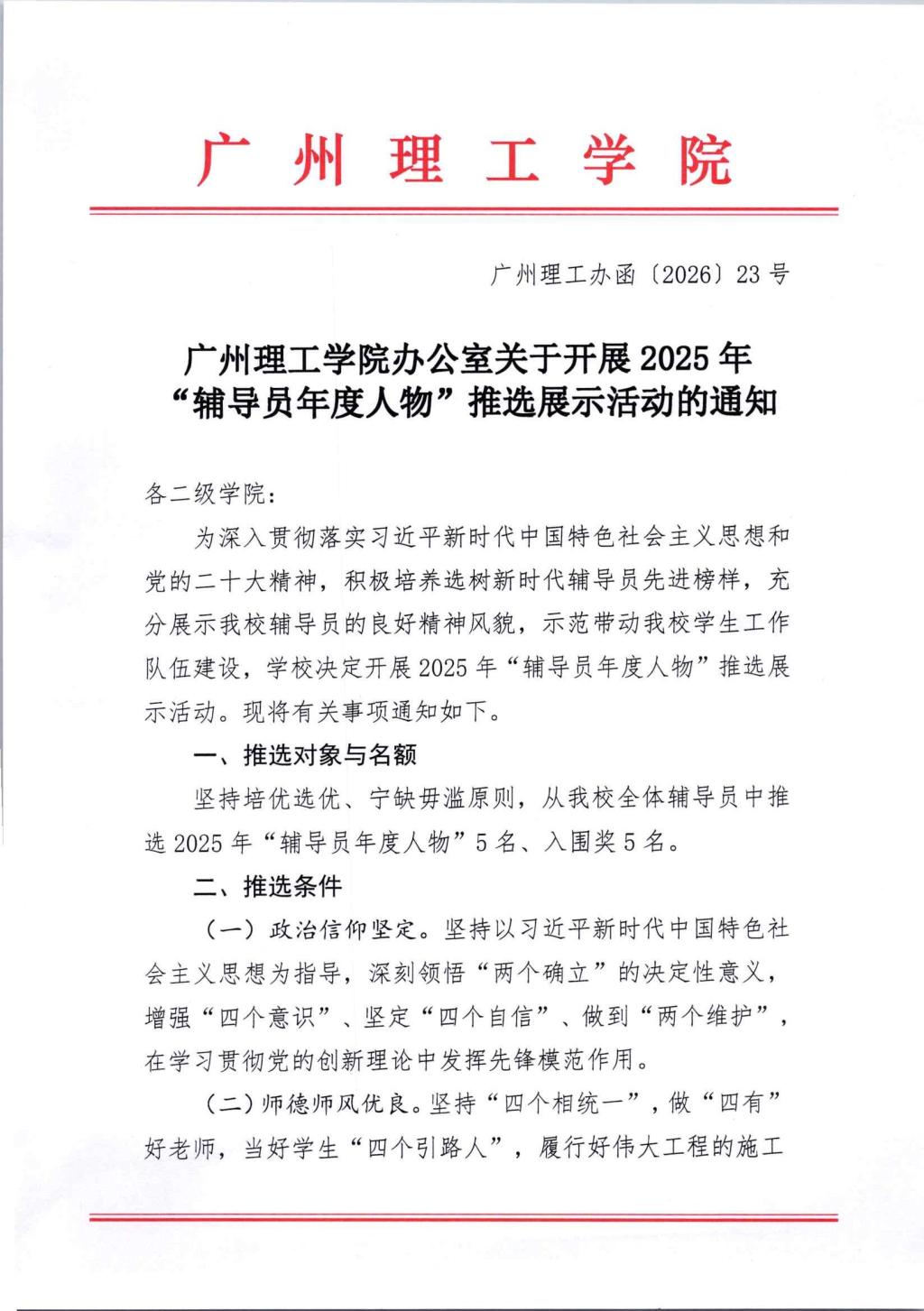 关于开展2025年“辅导员年度人物”推选展示活动的通知