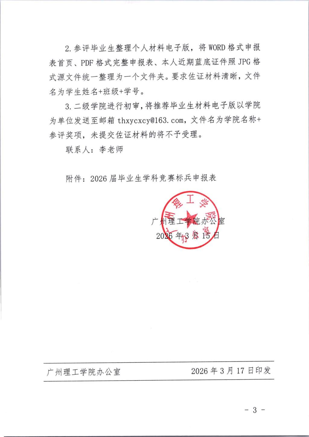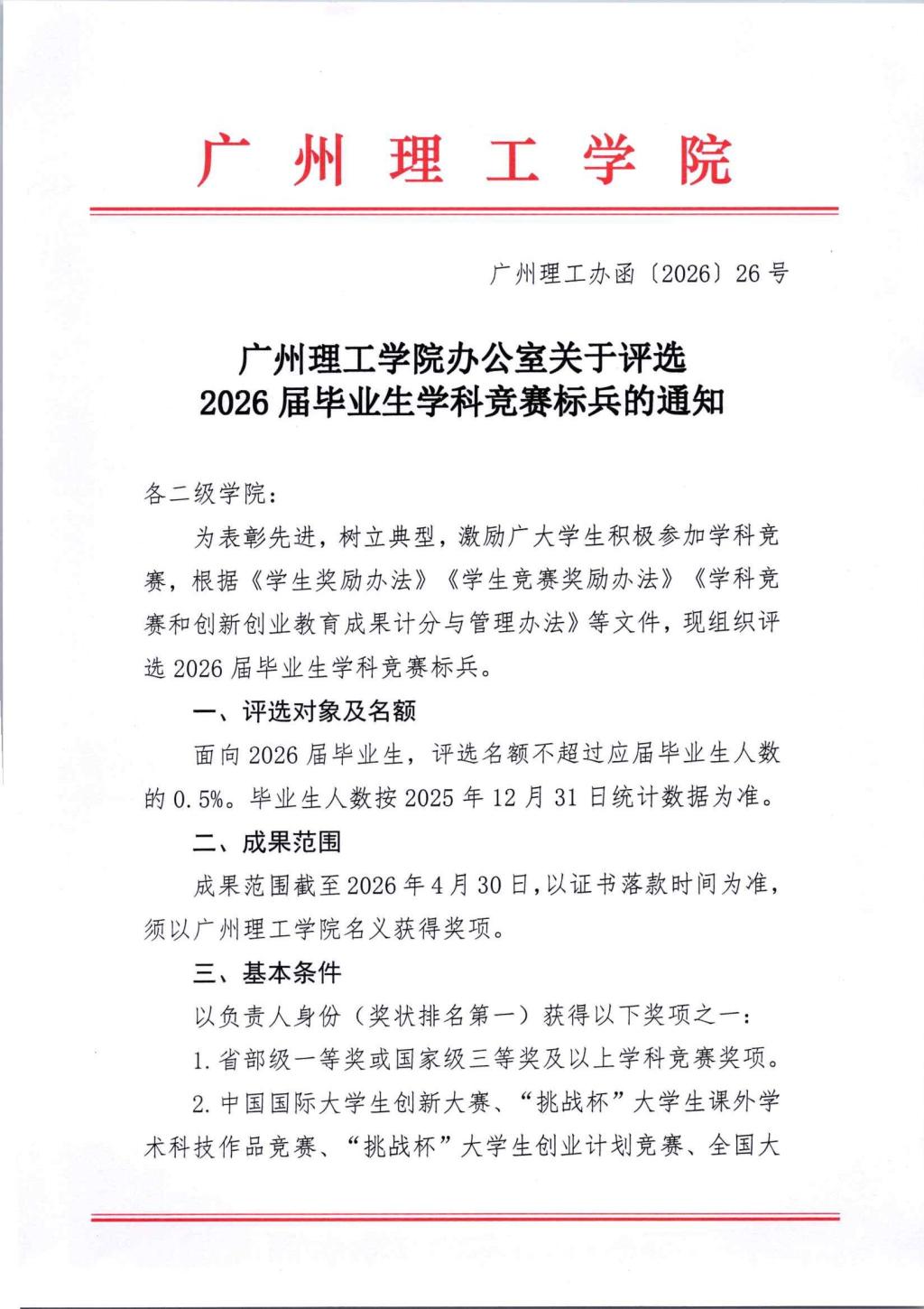 关于评选2026届毕业生学科竞赛标兵的通知