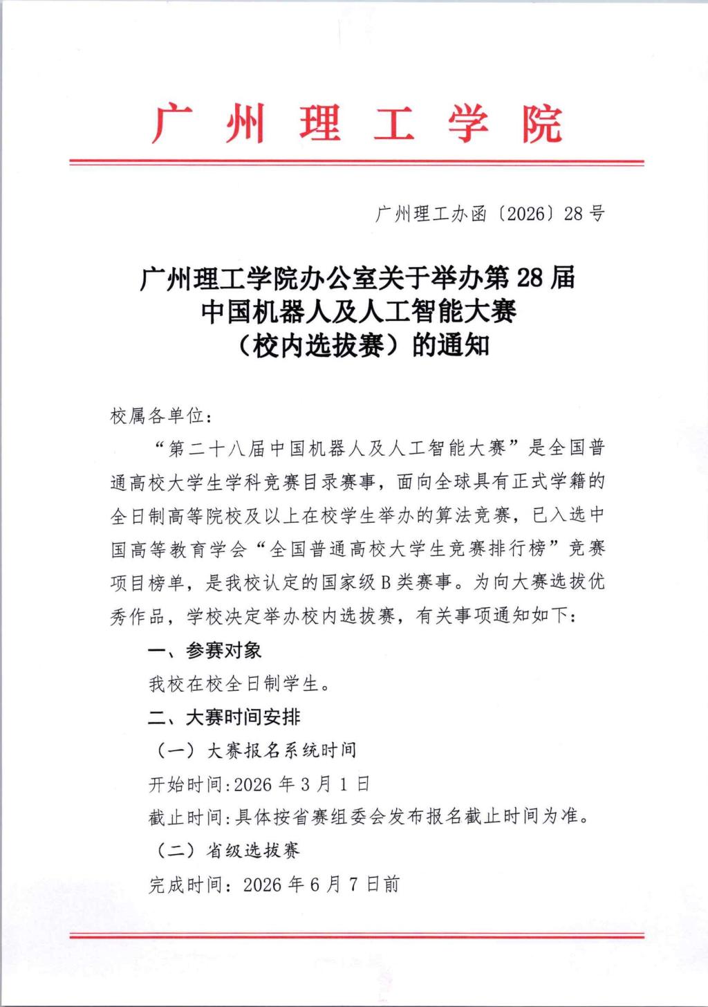 关于举办第28届中国机器人及人工智能大赛(校内选拔赛)的通知