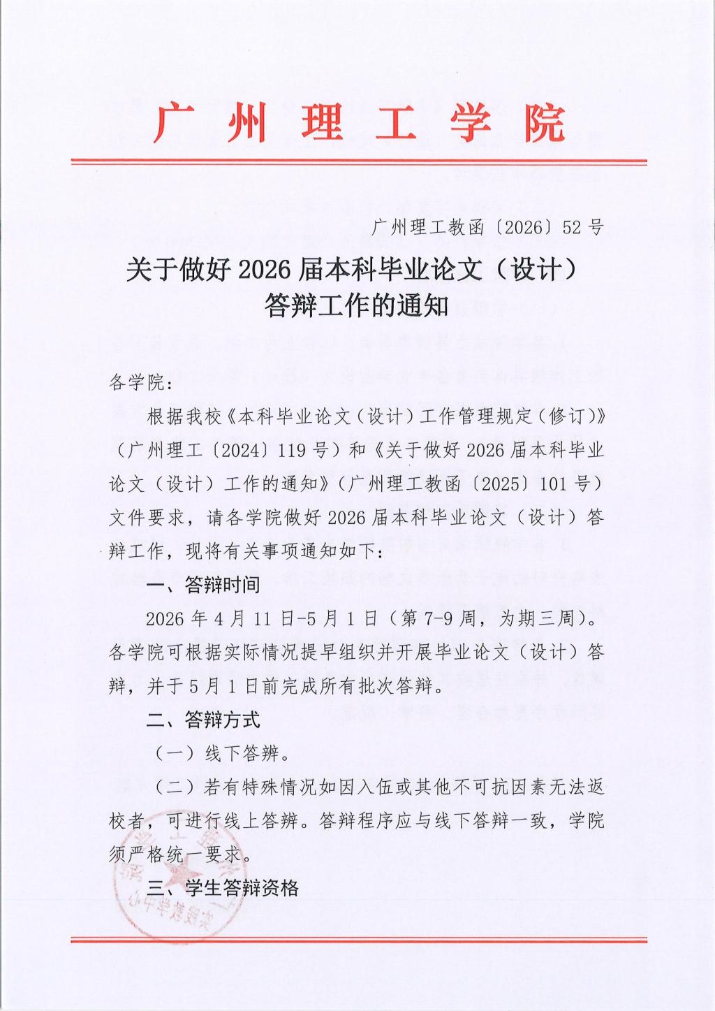关于做好2026届本科毕业论文(设计)答辩工作的通知