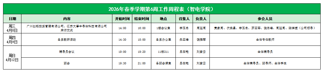 智电公司2026年春季学期第六周工作周程表