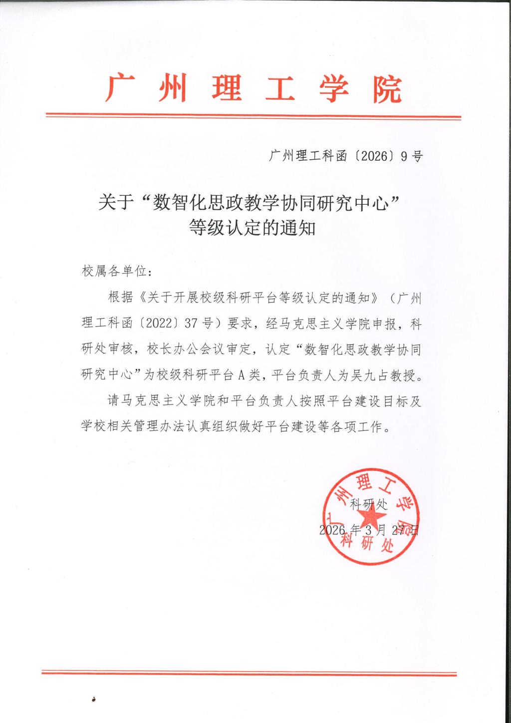 关于“数智化思政教学协同研究中心”等级认定的通知