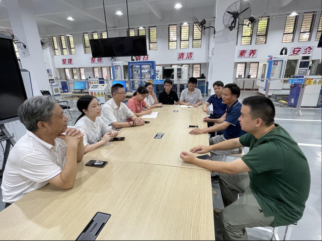 本次调研在文华公司智能制造工程实训创新中心现场展开,中心主任冯天麟教授、副主任唐嘉栋老师与评建工作小组成员进行了经验交流座谈,并参观了创新中心。