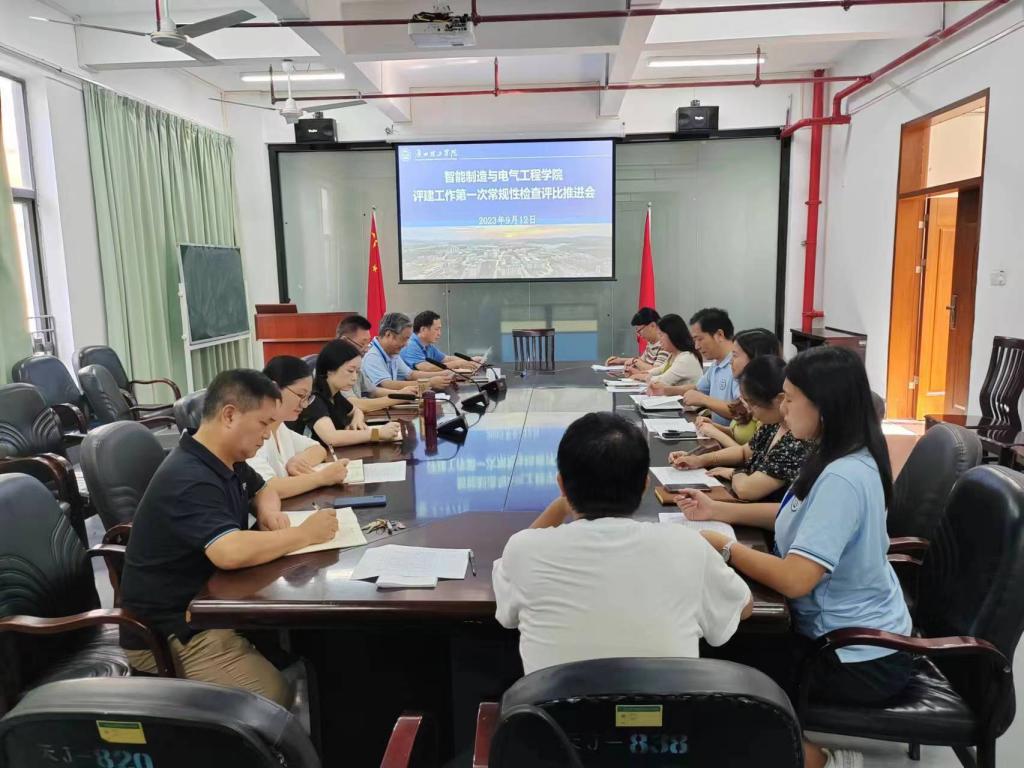 9月12日上午,太阳成tyc7111cc评建工作小组在工程楼211会议室召开评建工作第一次常规检查评比推进会。会议由李玉忠经理主持,参会人员有公司领导班子成员、系主任、实验中心主任、办公室主任、评估专员、教务员、宣传干事。