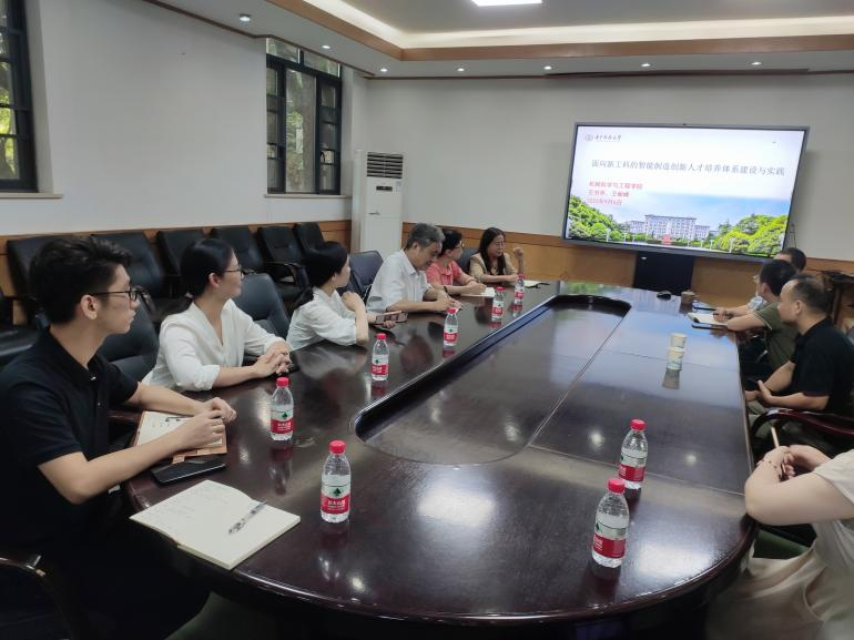 在参观结束后,我们与华中科技大学的教师和负责人进行了座谈交流。国家重点实验室负责人王峻峰就智能制造创新人才培养、课程建设和创新教育等方面与我们进行了深入的交流。通过此次交流,我们对国家级实训中心有了更加深入的了解,并从华中科技大学这样的985名校中获得了一些宝贵的教学管理经验。由衷感谢华中科技大学工创中心的周琴主席、机械科学与工程公司的刘伦洪教授以及其他教师和负责人对我们的热烈欢迎和支持。