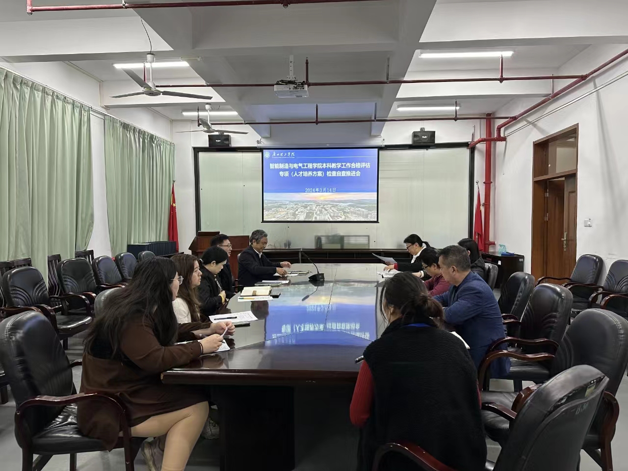 评估专员高波老师宣读了广州理工评函〔2024〕5号《关于开展2024年3月本科教学工作合格评估专项检查评比的通知》的文件内容,重点传达工作安排和工作时间节点。