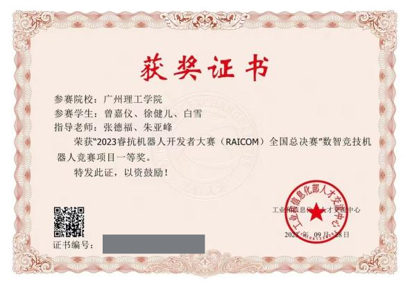 2023睿抗机器人开发者大赛全国总决赛“数智竞技机机器人“决赛国家级一等奖