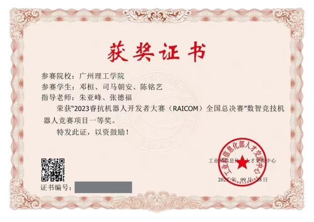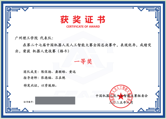 第二十七届中国机器人及人工智能大赛全国总决赛机器人竞技赛国家级一等奖