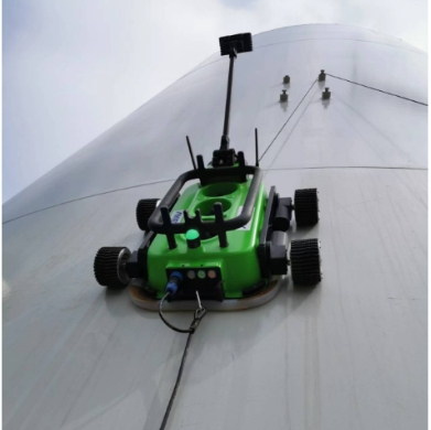多模态运动机构;轮-足复合机构,柔性连续体结构;搭载搭载IMU惯性单元与深度学习模型具有智能感知与决策,通过数字孪生技术构建全尺寸三维模型,实时对比运行数据。石化储罐检测:直接吸附在储罐表面,执行清理、检测、喷涂等任务,减少人工高空作业风险。