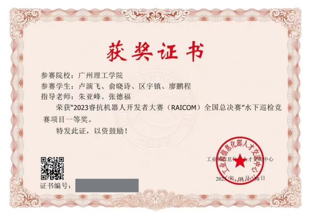 2023睿抗机器人开发者大赛全国总决赛"水下巡检竞赛项目一等奖