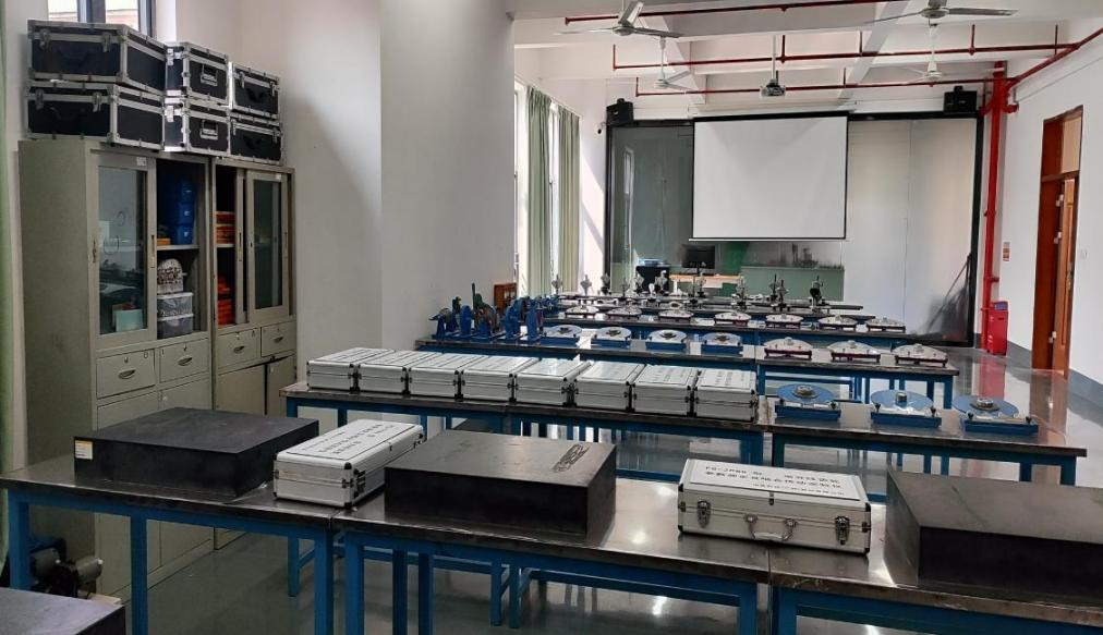 本实验室建于2011年,主要面向机械设计制造及其自动化、智能制造工程、机器人工程等专业,实验室使用面积约150平方米。包含了各种类型的机械零件,如齿轮、轴承、轴、键等,以及相关的工具和设备。主要承担实验课程包括齿轮径向圆跳动误差的测量、直线度误差测量、表面粗糙度测量、轴系组合与设计等实验。