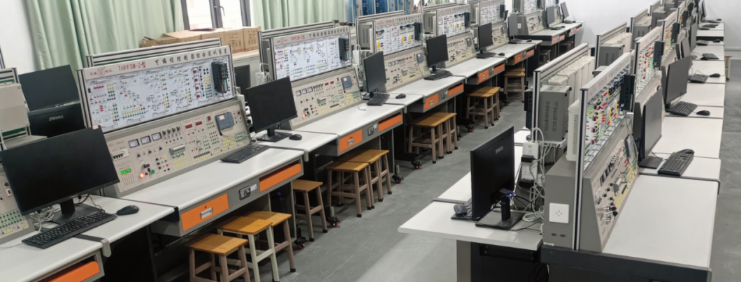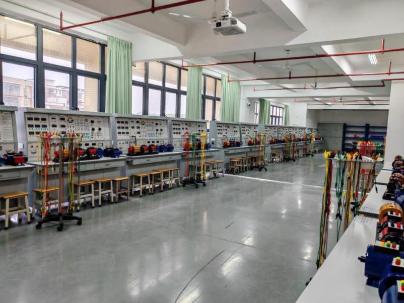 本实验室建于2023年,主要面向电气工程及其自动化和自动化专业,实验室使用面积约119平方米,实验台32套。主要设备:THPFSM-2型可编程控制器综合实训装置、四层电梯实训模型、材料分拣实训模型、十字路口交通灯实训模型、计算机电脑等。主要承担实验课程包括直流电机、变压器、单三相异步电机、电机拖动、控制电机、工厂电器控制等。