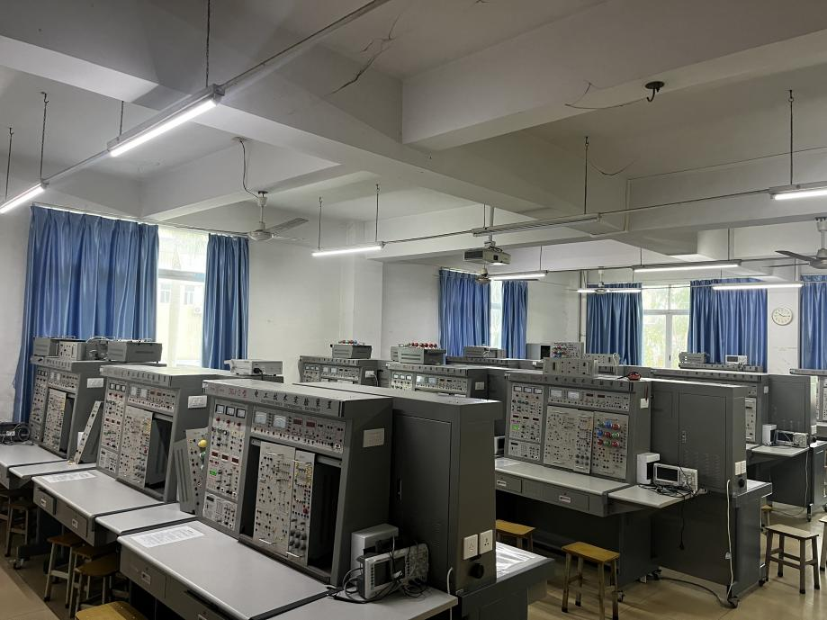 本实验室建于2007年,主要面向电气工程及其自动化和自动化专业,实验室使用面积约150平方米,实验台20套。主要设备:电气试验台、数字电力电子及电气传动教学实验台、实验挂件、实验导线等。主要承担实验课程包括锯齿波同步移相触发电路实验、单相桥式全控整流电路、单相桥式有源逆变电路实验、三相半波可控整流电路实验、全桥DC/DC变换电路实验、数字电力电子技术实验等。